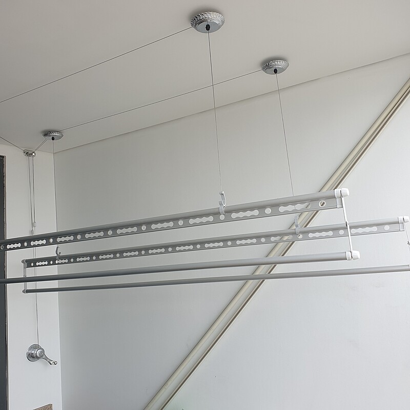 - Tiết kiệm không gian: Đây là ưu điểm lớn nhất của loại giàn phơi này. Khi không sử dụng, bạn có thể kéo giàn phơi lên sát trần, giải phóng không gian phòng.