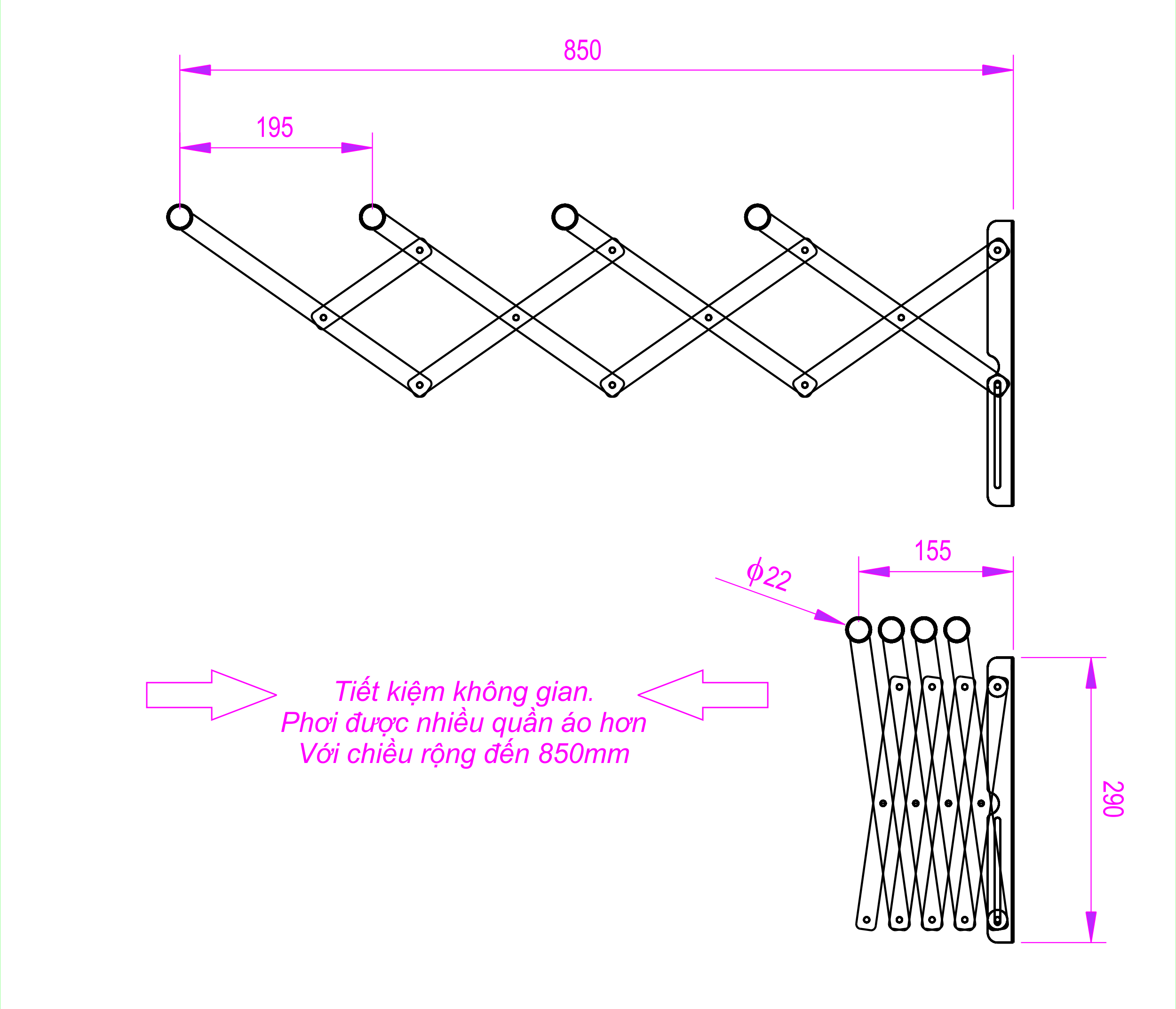 - Khi cần sử dụng, người dùng kéo các thanh phơi ra.