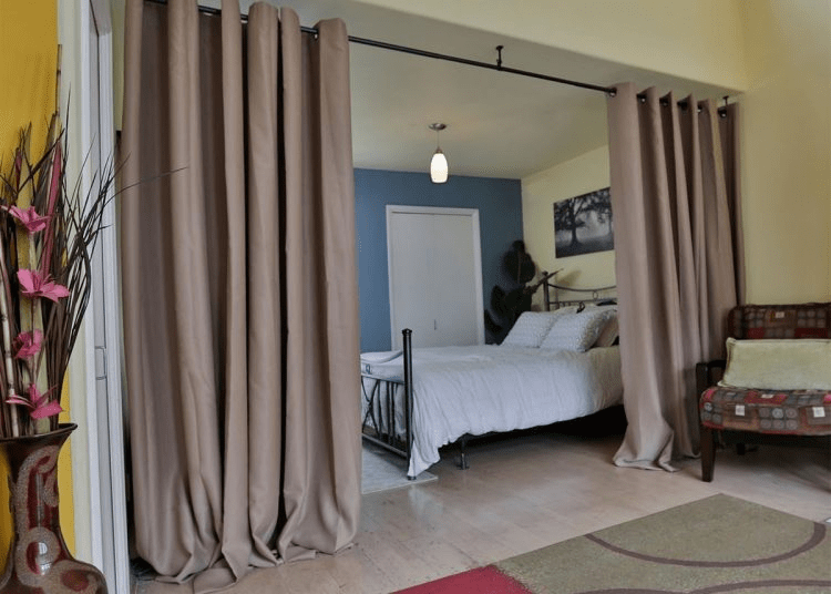 Chia phòng ngủ: Rèm dày hoặc vách MDF