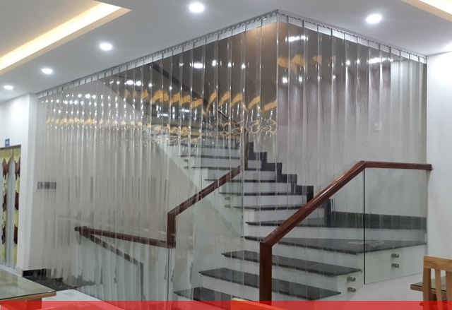 Vách có thể là rèm nhựa PVC, vách nhựa mica, kính mờ, hoặc rèm vải dày – tùy thuộc mục đích và mức độ cố định mong muốn.